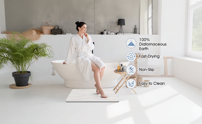 Diatomaceous earth mats naturally absorb moisture fast, keeping your space dry and fresh. Made from sustainable materials, they're perfect for bathrooms, entryways, and any area where quick drying matters. Durable, eco-friendly, and designed to last through daily use.