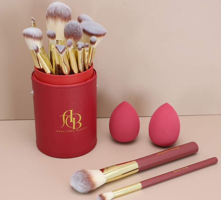 Each brush is crafted with matte red wood handles and elegant gold ferrules, offering both style and durability. Whether you’re blending foundation, applying eyeshadow, or adding the perfect contour, these brushes give you precision and control.