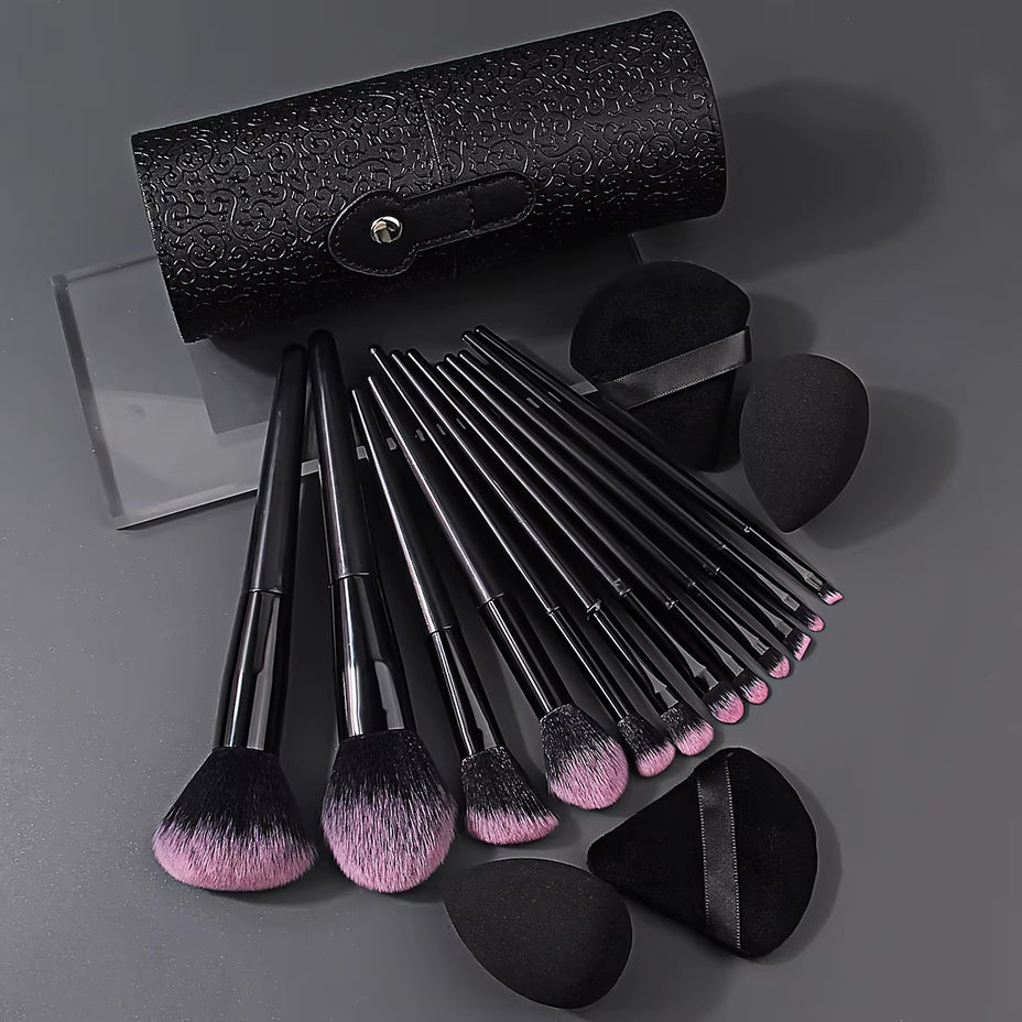 Complete Professional Set – Includes 16 high-performance makeup brushes for face, eyes, and lips + 2 soft beauty sponges. Ideal for foundation, contouring, blending, eyeshadow, and more – all you need for flawless makeup.